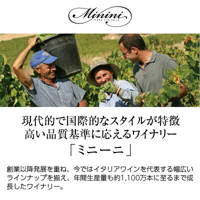 イタリア各地の小さな生産者と長く続いている協力関係によって、ミニーニ社では生産者がどのようにブドウを栽培しているか細かく把握することができ、醸造においては常に新しく改良された技術に順応することができています。